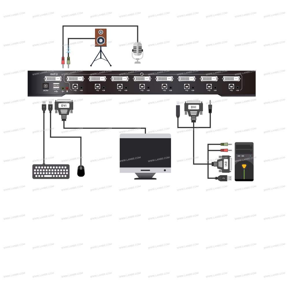 提供四種便捷方式,可切換安裝架構(gòu)中的電腦: (1)使用切換器前面板的連接端口選擇按鍵;(2)從鍵盤輸入熱鍵組合;(3)從屏幕顯示(OSD)的選單上選擇。自動掃描功能提供自動掃描,并逐一監(jiān)控安裝架構(gòu)中的電腦。