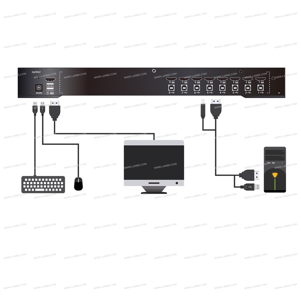 一組USB控制端可管理8臺(tái)HDMI接口電腦
