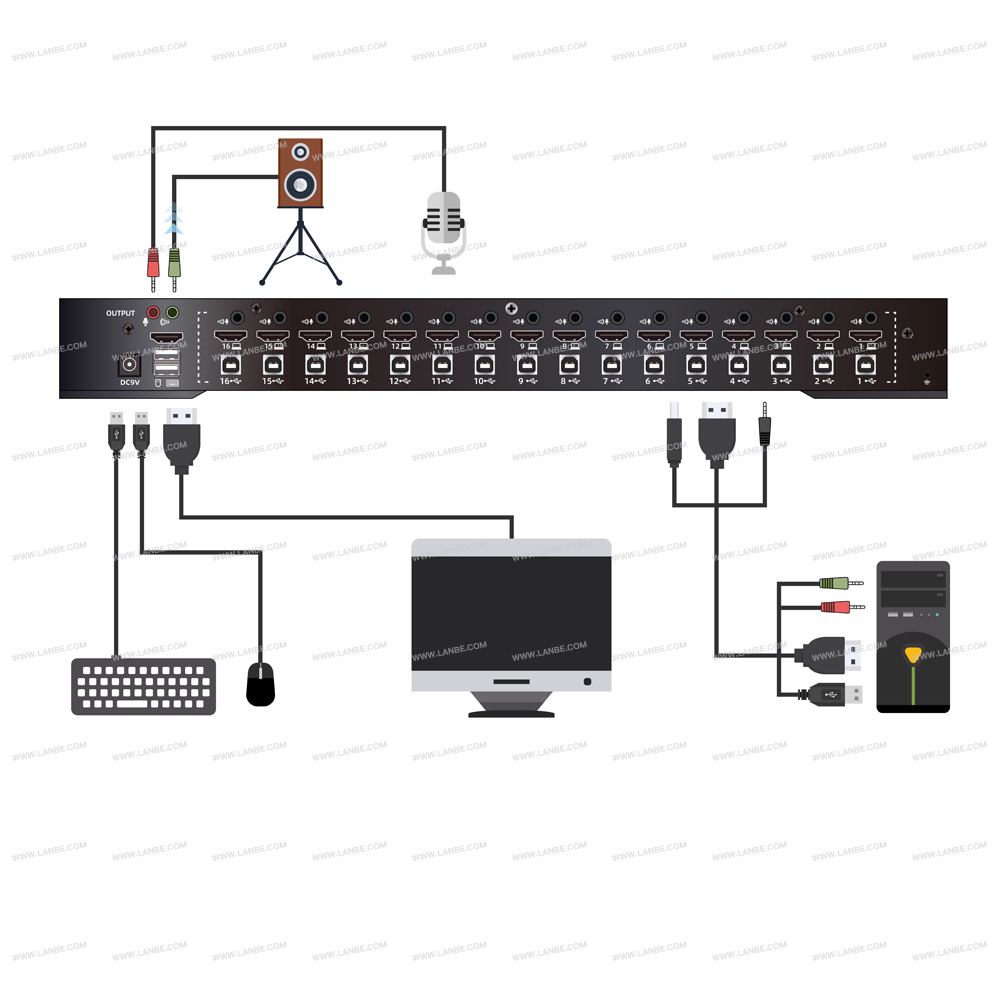 16端口HDMI機(jī)架式KVM多電腦切換器是一臺(tái)可允許管理人員從一組USB鍵盤(pán)、鼠標(biāo)或者一組PS2鍵盤(pán)、鼠標(biāo)及控制端訪問(wèn)16HDMI電腦的多功能設(shè)備。