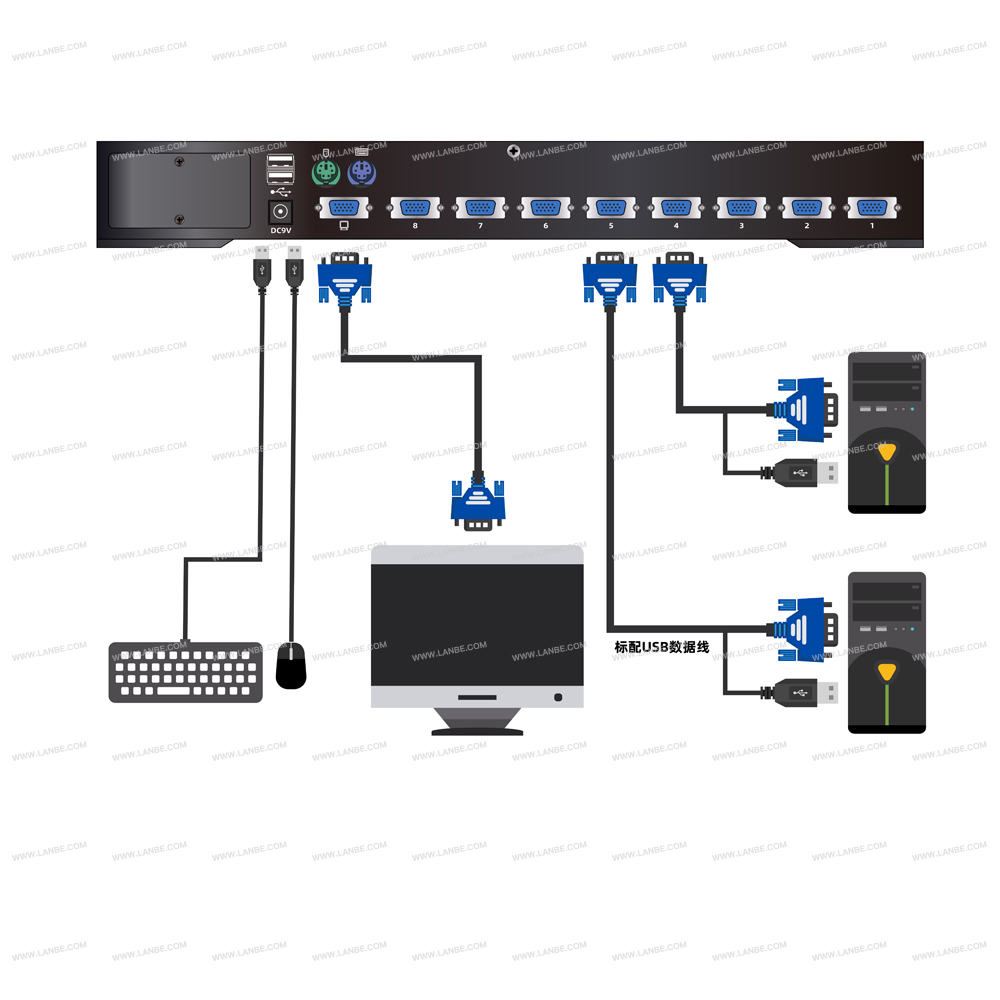 提供四種便捷方式,可切換安裝架構(gòu)中的電腦: (1)使用切換器前面板的連接端口選擇按鍵;(2)從鍵盤輸入熱鍵組合;(3)從屏幕顯示(OSD)的選單上選擇。自動掃描功能提供自動掃描,并逐一監(jiān)控安裝架構(gòu)中的電腦。(4)通過擴(kuò)展的IP模塊的網(wǎng)絡(luò)端口進(jìn)行遠(yuǎn)程的網(wǎng)絡(luò)控制操作連在KVM上面的電腦。
