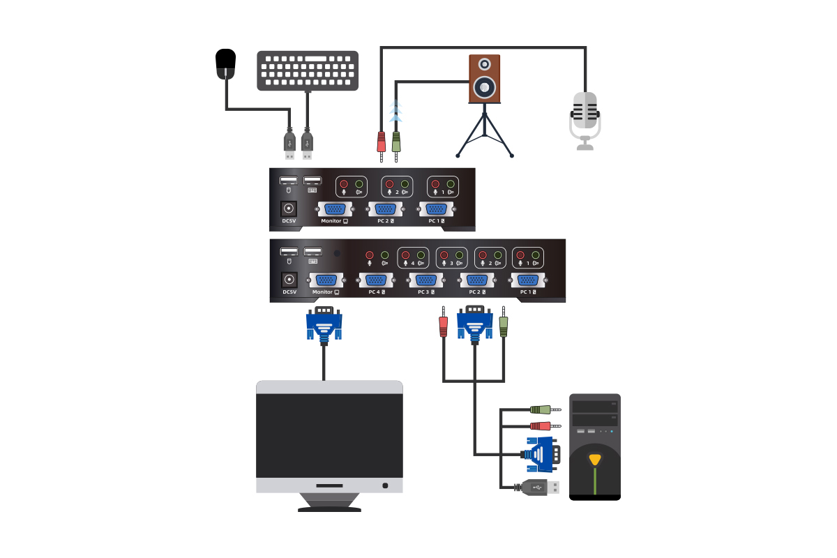 單一USB控制端控制2臺或4臺電腦和USB外設