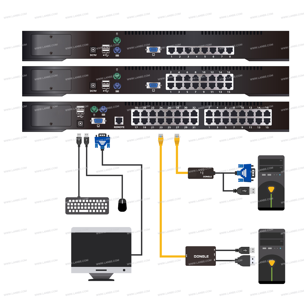 提供四種便捷方式,可切換安裝架構(gòu)中的電腦: (1)使用切換器前面板的連接端口選擇按鍵;(2)從鍵盤輸入熱鍵組合;(3)從屏幕顯示(OSD)的選單上選擇。自動掃描功能提供自動掃描,并逐一監(jiān)控安裝架構(gòu)中的電腦。(4)通過擴(kuò)展的IP模塊的網(wǎng)絡(luò)端口進(jìn)行遠(yuǎn)程的網(wǎng)絡(luò)控制操作連在KVM上面的電腦。